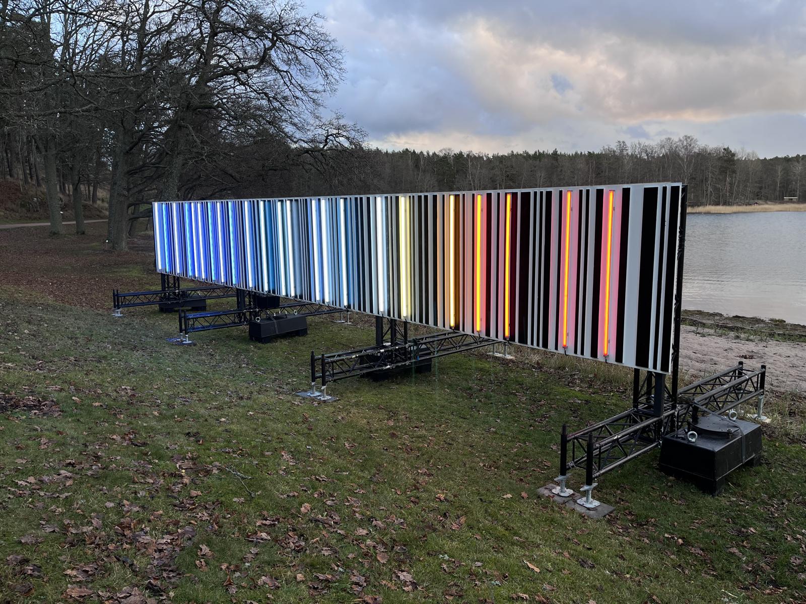 A Defining Moment in Time deals with one of the major issues of our time – global warming. However, the work is not a prediction of disaster but a bright 100 000 lumen glimmer of hope. The colour temperature of the work moves from cold to neutral and to blazing hot referencing the change in climate between 1850-2021. With this work Salvesen is inspiring the viewer to see the force in their own actions. What we do matters and what we do now matters even more. Cities are the earth’s garbage fires in which the fast pace of life creates unnecessary pollution. We, the inhabitants, should take a critical look at our way of life.